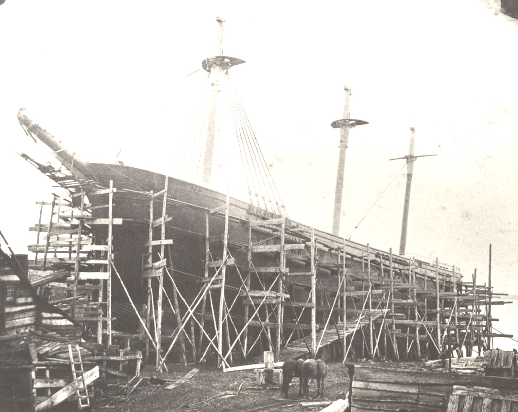 Contemporary sail plan. In the early 1870s there was a economic depression. As a result the export timber business was in the doldrums so the Calvin’s decided to diversify their business by building an ocean going ship. The keel was laid in 1875