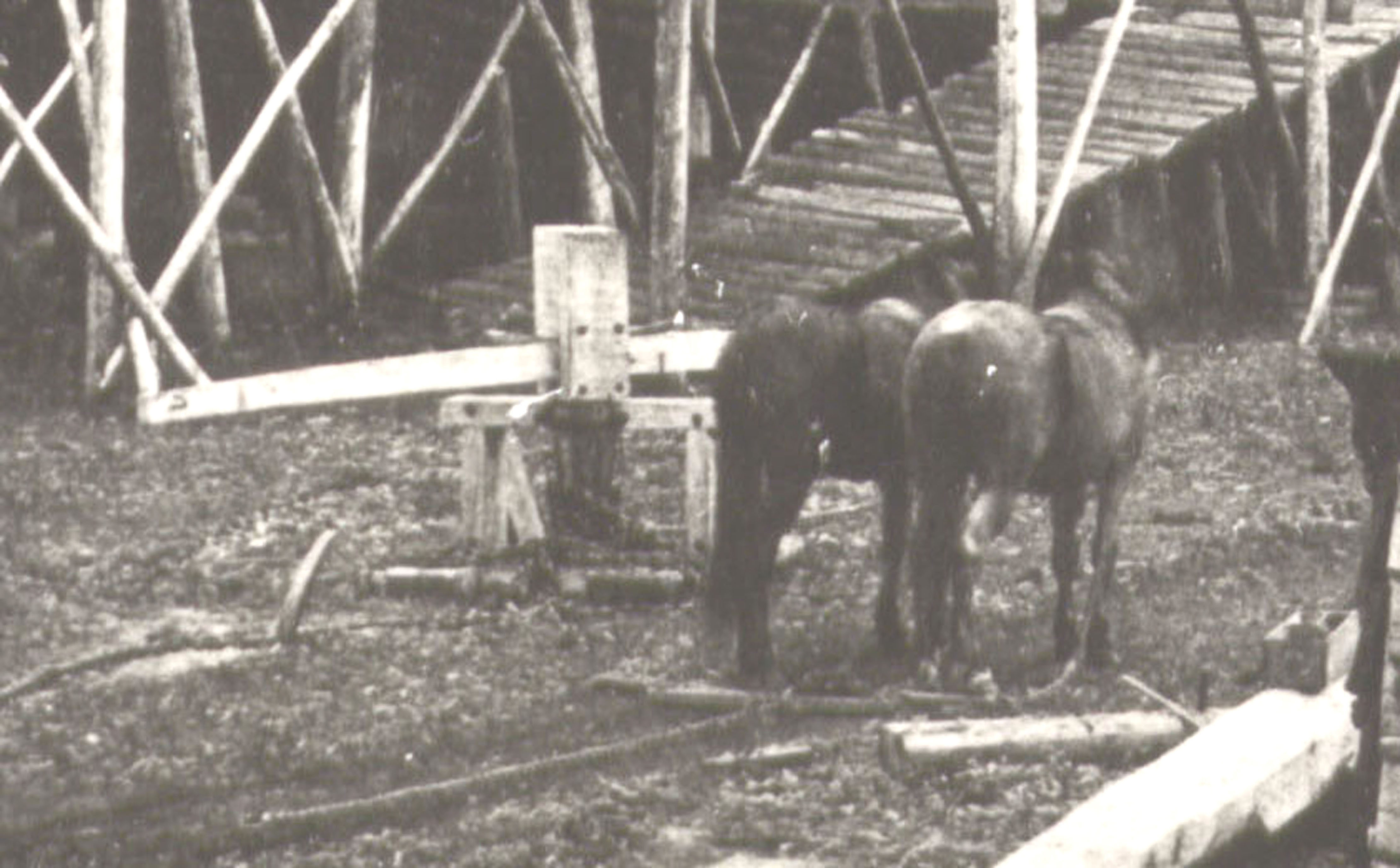Block and tackles and a horse whim were the labour saving devices available to lift heavy gear needed on deck during construction. .